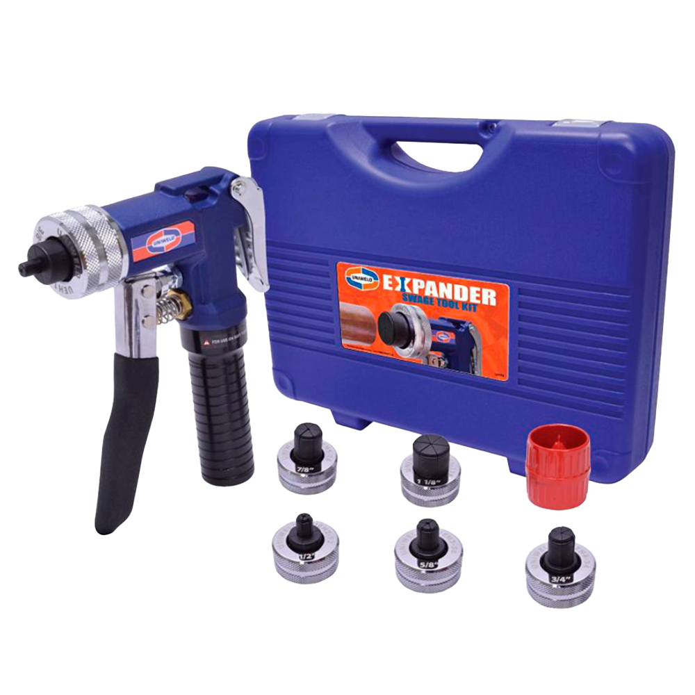 El kit incluye: 3/8″, 1/2″, 5/8″, 3/4″, 7/8″, 1-1/8″. Cabezales de expansión, herramienta de desbarbado interior/exterior y funda de transporte con compartimentos de almacenamiento. Diseño compacto de agarre de pistola capaz de trabajar en espacios reducidos y el mecanismo de palanca hidráulica y botón de liberación permiten un cambio rápido y fácil con una sola mano.