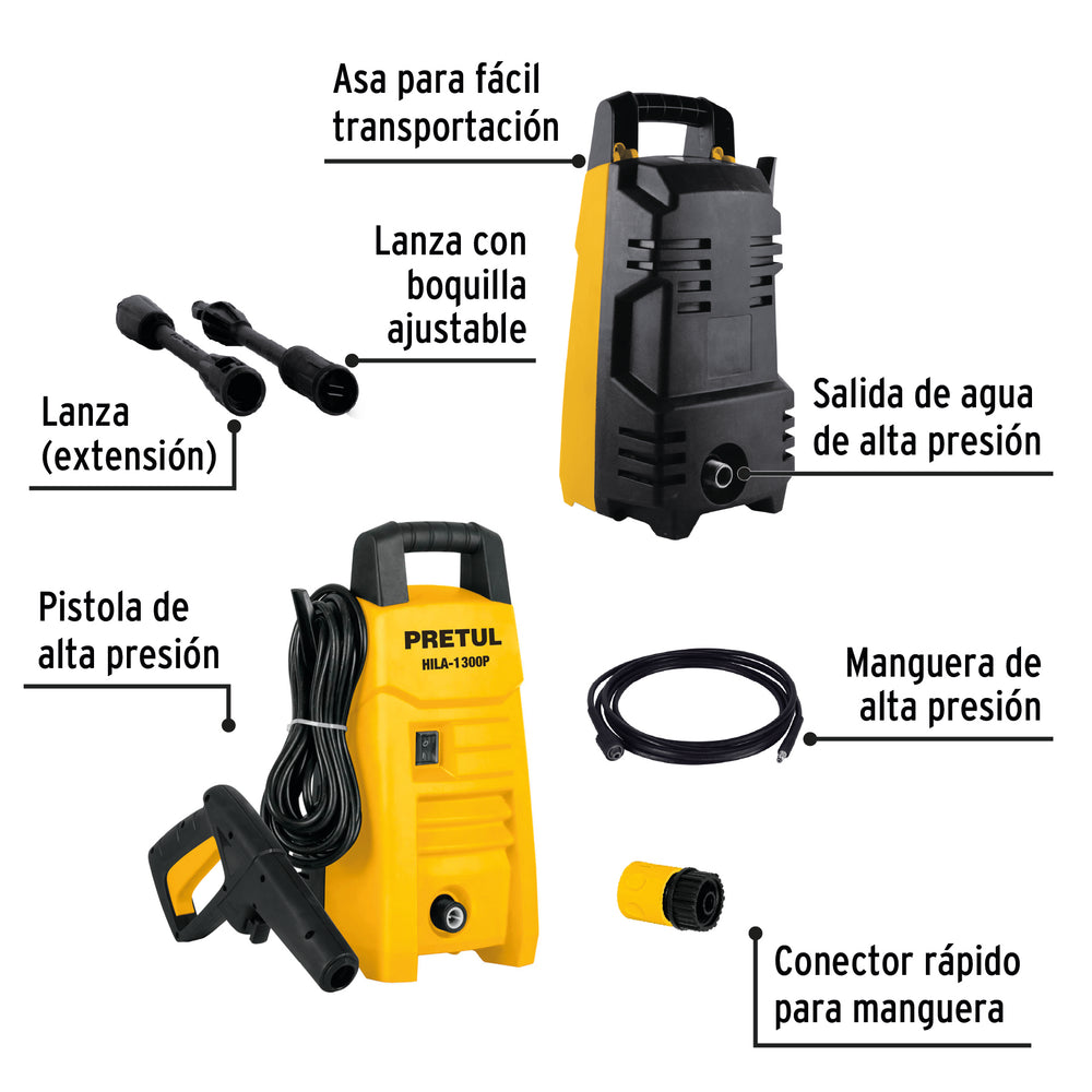 ¡Limpia tu espacio en minutos con la Hidrolavadora eléctrica Pretul! Con una potencia de 1300 PSI, la hidrolavadora elimina la suciedad y la mugre con facilidad. ¡Ahorra tiempo y esfuerzo en tu limpieza con esta máquina de alta presión!